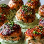 Delicious baked salmon meatballs served with a creamy avocado sauce, rich in flavor and healthy nutrients.