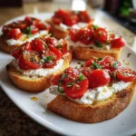 Finally, it’s time to make your bruschetta look as good as it tastes. Garnish each toast with fresh basil leaves. They add a pop of color and a lovely aroma. Serve immediately, and watch as your family and friends dive into this delightful appetizer!