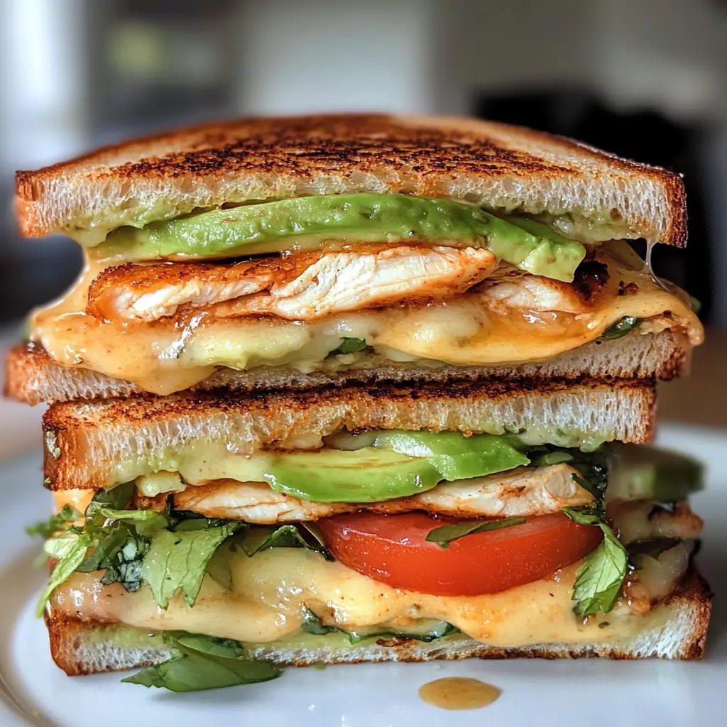 A delicious and satisfying sandwich featuring tender chicken, creamy avocado, and melted cheese, perfect for lunch or a quick dinner.