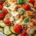 As the door swings open, the irresistible aroma of baked chicken mingling with fresh zucchini fills the air, inviting you into a world of comfort and warmth. The crispness of the vegetables subtly complements the tender chicken, all blanketed under a golden layer of bubbling cheese. Each forkful offers a delightful balance of textures: the succulent juiciness of chicken, the slight crunch of zucchini, and the rich creaminess that only melted cheese can provide. This isn’t just a meal; it’s an experience that draws family and friends together, inspiring laughter and conversation around the dinner table.