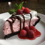 For those who want to get creative, you can garnish with additional raspberries or chocolate shavings. If you’re looking for a lighter option, consider using a graham cracker crust instead of chocolate. The exact quantities for each ingredient are available at the bottom of the article for easy printing!