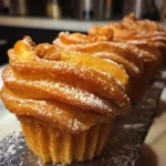 Churro Cruffins are a delightful fusion of churros and croissants, offering a unique dessert experience with a crispy exterior and a soft, fluffy interior, coated in cinnamon sugar.