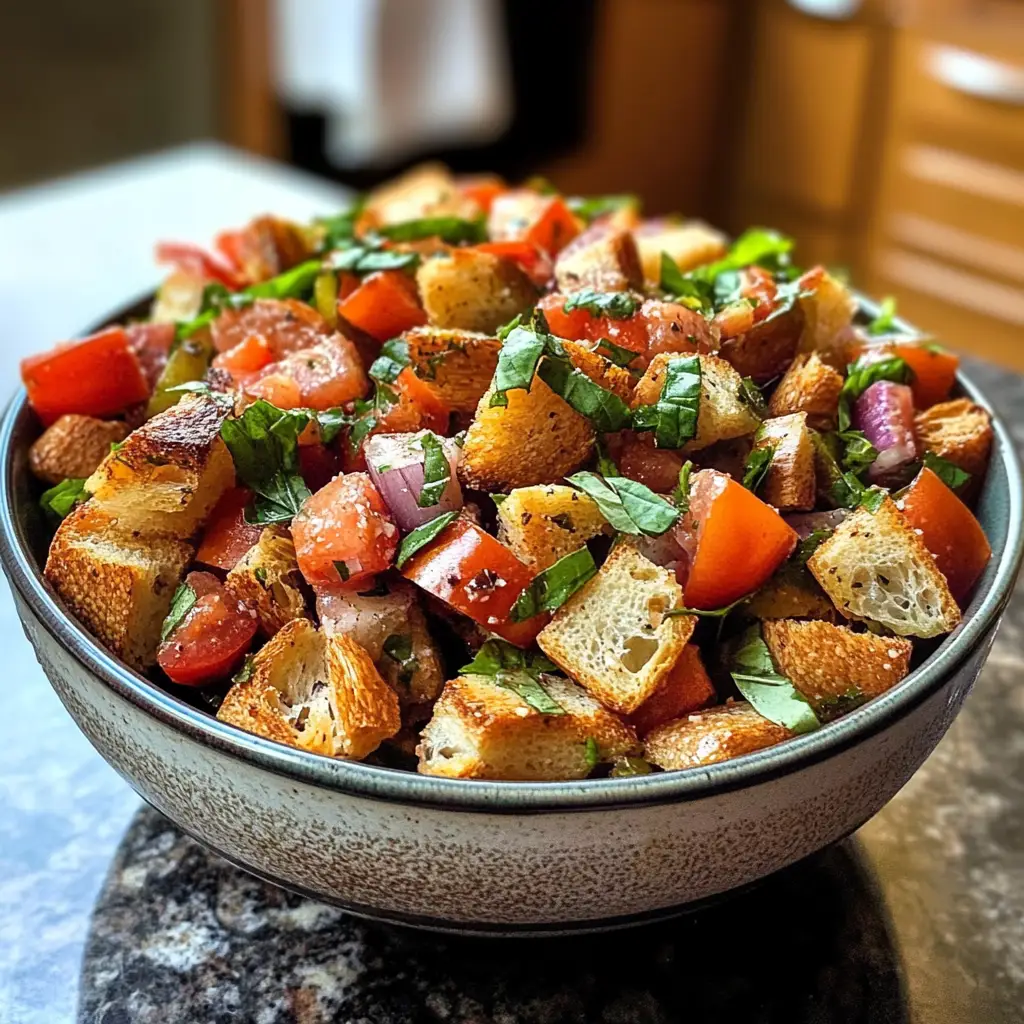 Classic Italian Panzanella Salad is a refreshing and vibrant dish made with ripe tomatoes, crusty bread, and fresh vegetables, perfect for summer.