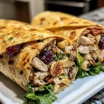 Now comes the fun part! Spoon the chicken salad mixture onto the lettuce leaves. Don’t be shy; pile it on! Then, carefully wrap the tortillas tightly around the filling. I like to tuck in the sides as I roll to keep everything secure. Slice the wraps in half, and voilà! You’re ready to enjoy your Cranberry Pecan Chicken Salad Wrap!
