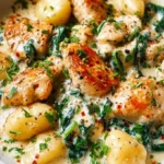 Indulging in a rich, creamy dish feels like a warm embrace on a chilly evening, and Creamy Garlic Parmesan Chicken Gnocchi does exactly that. Imagine a bubbling skillet, filled with tender, pillowy gnocchi swimming in a luscious sauce that sings of garlic and Parmesan—a symphony of flavors that tantalize your taste buds. When you take that first bite, the fusion of robust garlic and the nutty essence of Parmesan unfolds, accompanied by the comforting satisfaction of juicy chicken, all mingling with vibrant spinach. This isn’t just a meal; it’s a delightful experience that warms the soul and nourishes the heart.