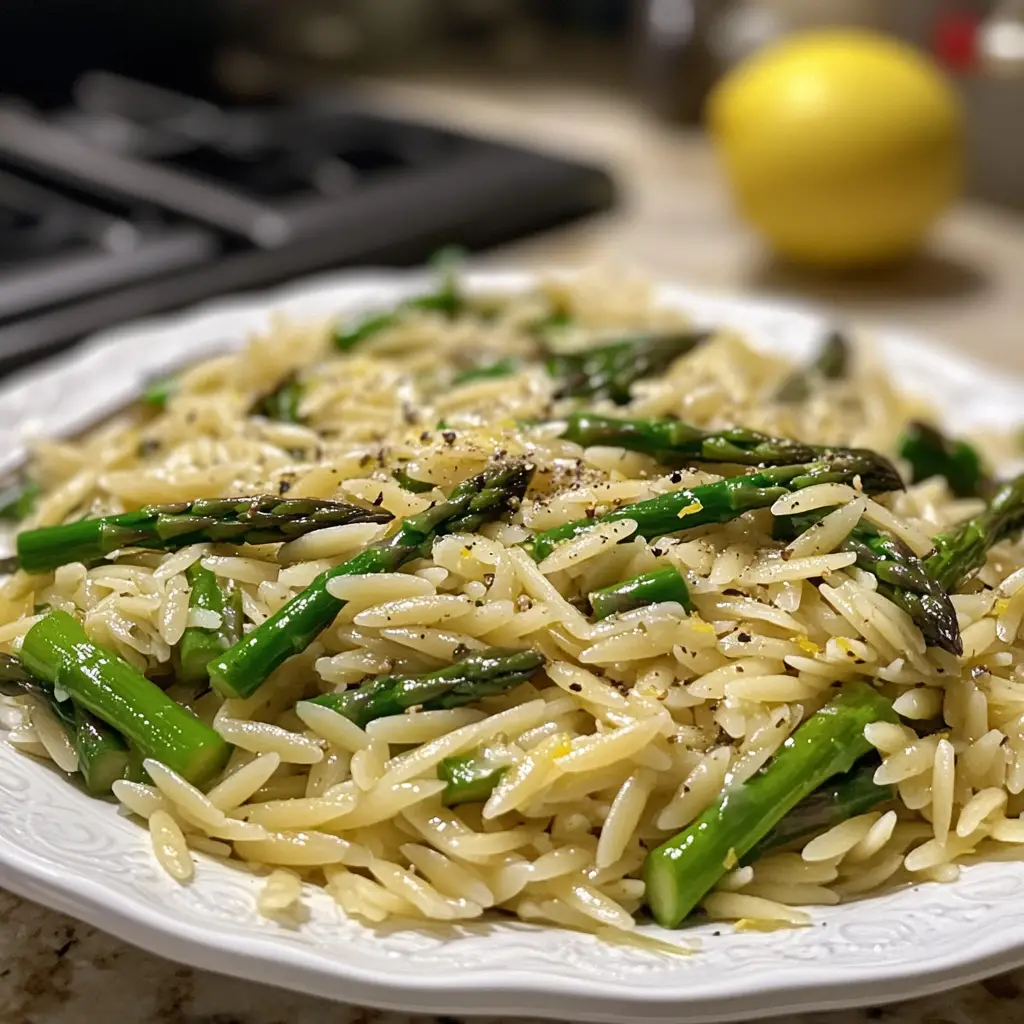 Keywords: Creamy Lemon Asparagus Orzo, Spring Meal, Pasta Recipe, Vegetarian Dish
