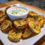 Crispy Fried Zucchini Coins with Garlic Ranch is a delicious appetizer featuring golden-brown zucchini slices, perfectly seasoned and served with a creamy garlic ranch dip.