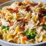 Crockpot Chicken Noodle Casserole envelops you in a warm embrace, promising a cozy meal that stirs nostalgia with every enticing bite. Imagine tender egg noodles, softly cradled in a rich, creamy sauce, infusing your kitchen with an inviting aroma that draws everyone to the dinner table. The first forkful delivers a delightful symphony of flavors—savory shreds of chicken mingling harmoniously with the smoky crunch of turkey bacon, while mixed vegetables add bursts of freshness and color, creating a dish that both nourishes and comforts.