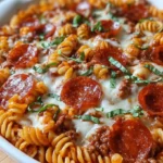 A heartwarming casserole combining the flavors of pizza with the comfort of pasta, perfect for family gatherings.