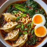 There’s something incredibly comforting about a steaming bowl of dumpling ramen, a dish that not only warms your body but also caresses your soul. Picture this: nestled between tender ramen noodles, savory dumplings float in a rich, fragrant broth, while vibrant greens add a pop of color and freshness. Each spoonful holds a delightful blend of flavors that dance on your palate; the meaty dumplings offer a satisfying chew, the silky noodles create a lush mouthfeel, and the warm broth wraps around it all in a heartfelt embrace. It’s a symphony of textures and tastes, perfect for those cozy nights at home or any time you yearn for a taste of comfort.