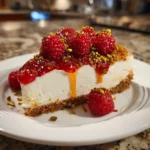 Finally, when you’re ready to serve, garnish your cheesecake with fresh raspberries and chopped pistachios. This adds a pop of color and a delightful crunch. Slice it up, serve it to your loved ones, and watch their faces light up with joy!