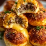 Delightful cheeseburger bombs wrapped in flaky biscuit dough, filled with seasoned beef, cheddar, and Parmesan for an unforgettable culinary experience.