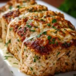 There’s something undeniably comforting about the aroma of a home-cooked meal wafting through the kitchen. Picture this: a golden-brown loaf nestled in a baking dish, steam rising gently as you pull it out of the oven, revealing a treasure trove of melting cheese and rich flavors. As you slide a knife through its tender surface, the sound is akin to breaking the crust of a fresh loaf of bread. You dig in, and the first bite offers a delightful explosion of garlic and Parmesan, perfectly complemented by the succulent chicken. The creamy mozzarella that crowns the top adds a satisfying stretch, wrapping each morsel in an indulgent embrace. Garlic Parmesan Chicken Loaf isn’t just a dish; it’s an experience that hugs you from the inside with warmth and flavor.