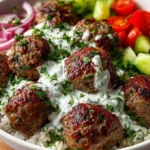 The delightful combination of textures keeps every forkful exciting—juicy meatballs, fluffy rice, and the crispness of cucumbers and bell peppers. Topped off with the creamy tang of Tzatziki, it becomes a colorful feast that beckons from the kitchen. With each bite, you’ll feel revitalized, thanks to the wholesome ingredients that nourish the body without sacrificing flavor. This recipe is not just a meal; it is a celebration of all that is delightful about cooking and eating together.