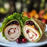 Harvest Turkey and Cranberry Wraps are a delightful combination of savory turkey, sweet cranberry sauce, and fresh greens, all wrapped in a soft tortilla for a perfect meal or snack.