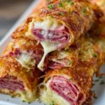 A playful take on the classic Reuben sandwich, these Keto Crispy Reuben Roll-Ups are packed with corned beef, sauerkraut, and melted cheese, all wrapped in a crispy exterior.
