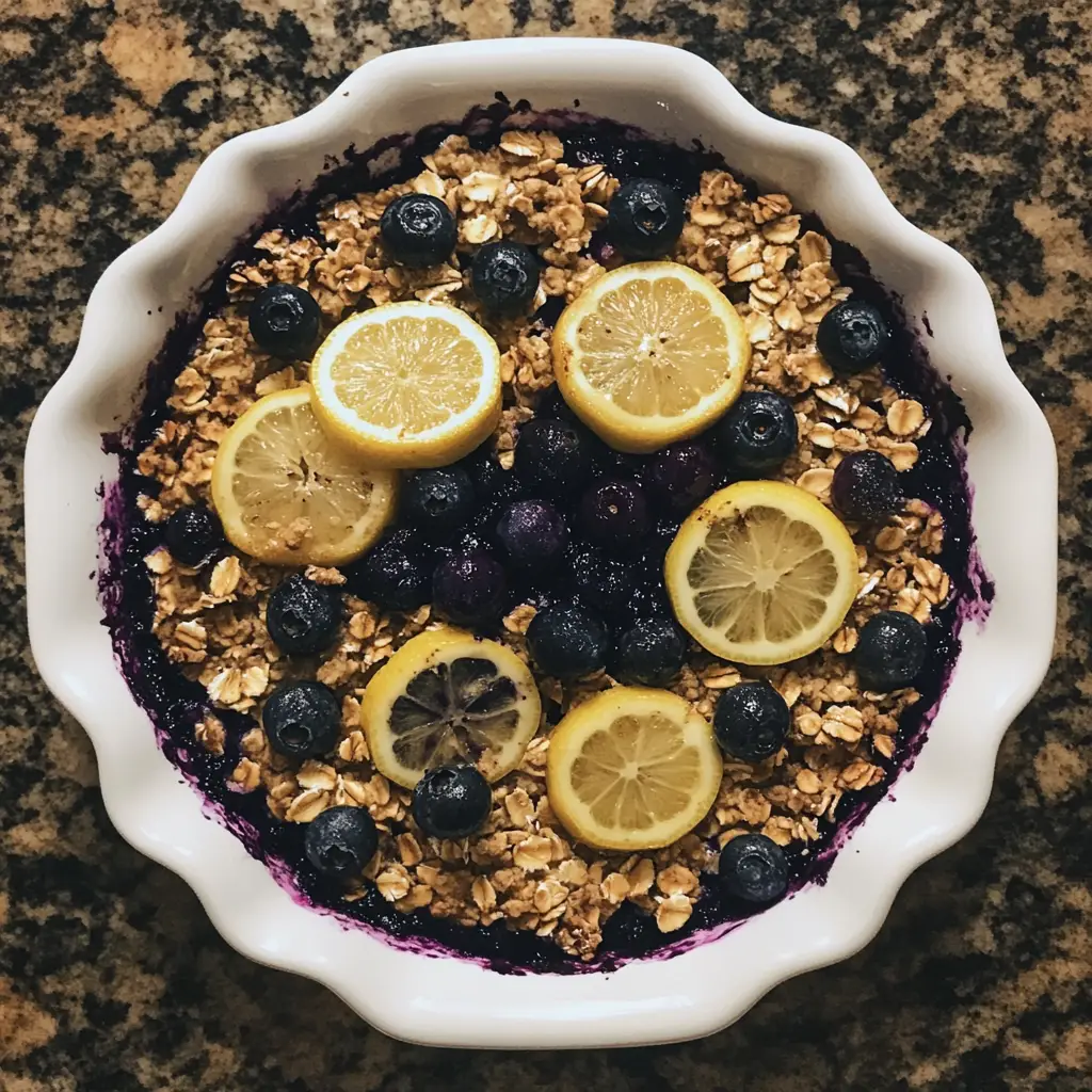 A delicious and healthy baked oatmeal recipe featuring fresh blueberries and a hint of lemon, perfect for breakfast or a snack.