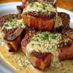 Indulge in the irresistible allure of Maple Bacon Pork Chops with Dijon Cream Sauce—a dish that embodies the perfect marriage of savory and sweet. Imagine this: thick, juicy pork chops sizzling to golden perfection, the aroma of smoky bacon wafting through the air, mingling harmoniously with the sweet notes of maple syrup and the sharp tang of Dijon mustard. Each bite delivers a symphony of flavors—a crispy exterior giving way to succulent meat, all draped in a luxuriously creamy sauce that tantalizes your taste buds. Prepare for a culinary experience that warms the soul and ignites the appetite.