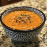 Now comes the fun part! Using an immersion blender, blend the soup until it’s smooth and creamy. If you don’t have an immersion blender, carefully transfer the soup to a regular blender in batches. Once blended, stir in the coconut milk for that velvety texture. It adds a lovely richness that makes this soup truly special.