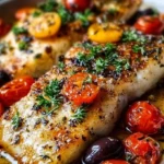 Picture the tender, flaky fish, its surface kissed gently by the richness of olive oil. Imagine vibrant lemon slices, plump cherry tomatoes, and briny black olives laying atop, creating a feast not only for the stomach but for the eyes and nose as well. With each forkful, the delicate flavors of oregano and garlic burst forth, creating a harmonious blend that envelops you in warmth. This dish doesn’t just satisfy hunger; it wraps you in a blanket of comfort, making it perfect for a cozy weeknight dinner or an inviting gathering with family and friends.