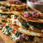 Mediterranean Quesadillas with Spinach, Feta, Mozzarella, and Red Onion bring warmth and joy to your dining table. Each bite is an experience wrapped in nostalgia and comfort, evoking memories of sun-soaked Mediterranean shores. Try this recipe the next time you’re craving something delicious yet simple, and watch how it lights up your meal with flavor and color. Gather friends and family, share the stories behind the flavors, and enjoy the irresistible blend of the Mediterranean in every crunchy, creamy wedge. Your taste buds will thank you!