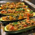 Mediterranean Quinoa-Stuffed Zucchini Boats are a delicious and healthy dish filled with quinoa, vegetables, and Mediterranean flavors, perfect for a light meal or side dish.