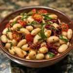 A refreshing and nutritious Mediterranean White Bean Salad featuring sun-dried tomatoes and olives, perfect for a light meal or side dish.