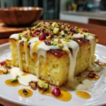 Finally, it’s time to add the finishing touch. Sprinkle the chopped nuts on top for a delightful crunch. Let the cake cool completely before cutting it into pieces. Patience is key here! Once it’s set, you’ll have a melt in the mouth besan milk cake that’s ready to impress.