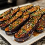 Once your eggplants are perfectly roasted, it’s time to garnish! Sprinkle sesame seeds and chopped green onions on top for a pop of color and crunch. Serve them warm, either as a side dish or over a bed of rice or quinoa for a complete meal. Enjoy every bite of this savory delight!