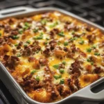 Next, it’s time for the star of the show: cheese! Sprinkle your choice of shredded cheese evenly over the top of the casserole. Cheddar is a classic choice, but feel free to mix in some Monterey Jack or pepper jack for a spicy twist. The cheese will melt beautifully, creating a gooey, delicious topping that everyone will love!
