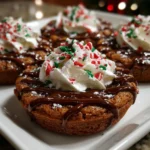 Once they’re out of the oven, let the cookie shots cool slightly. Then, use a shot glass to create a well in the center of each cookie. This is where the fun begins! Fill the wells with whipped cream and top with festive sprinkles. It’s like giving each cookie shot a little holiday hat!