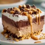 As you dive into this masterpiece, the aroma of freshly melted chocolate mingling with nutty peanut butter fills the air, tantalizing your senses and drawing you closer to the sumptuous layered delight. The textures play their part beautifully; the crunch of the crust meets the smooth, creamy layers above, making for an incredibly satisfying experience. Imagine a dinner gathering, an intimate date night, or simply a cozy evening enjoying a well-deserved treat; this dessert promises to shine in every scenario, inviting everyone to savor the moment.