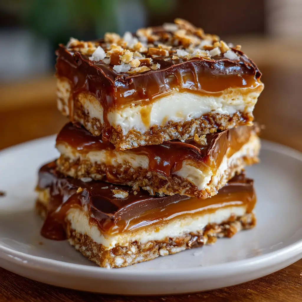 Delicious no-bake salted caramel pretzel bars that combine sweet and salty flavors for a delightful treat.