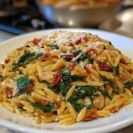 Keywords: One-Pot Spinach & Sun-Dried Tomato Orzo, easy pasta recipes, vegetarian meals