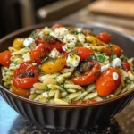 Finally, sprinkle crumbled feta cheese over the top. This creamy addition adds a lovely tang that balances the dish perfectly. Serve it warm or let it cool for a refreshing pasta salad. Either way, it’s sure to impress!