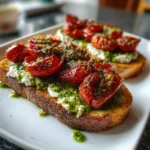 As a busy mom, I know how precious time can be, especially in the mornings. That’s why I absolutely adore this Pesto Ricotta Sourdough Toast with Roasted Tomatoes. It’s not just a meal; it’s a vibrant burst of flavor that can brighten any day. Imagine creamy ricotta, fresh pesto, and sweet roasted tomatoes all piled on crispy sourdough. This dish is perfect for a quick breakfast or a light lunch that will impress your loved ones. Plus, it’s so easy to whip up, you’ll wonder why you didn’t try it sooner!