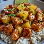 A tropical delight that combines juicy chicken and sweet pineapple with fluffy rice for a vibrant meal.