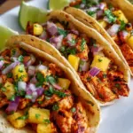 Delight in these flavorful Pineapple Chicken Tacos, featuring succulent chicken, fresh pineapple, and zesty lime in a warm tortilla.