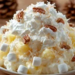 A refreshing and creamy salad combining sweet pineapple, shredded coconut, and mini marshmallows, perfect for summer gatherings.