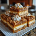 In another bowl, mix together the brown sugar, rolled oats, and chopped pecans. This is your streusel topping, and it’s going to add that delightful crunch! Sprinkle this mixture generously over the pumpkin layer. It’s like giving your bars a cozy blanket of sweetness!