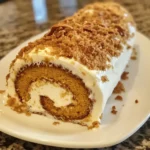A delightful and moist pumpkin roll cake filled with cream cheese frosting, perfect for fall gatherings.