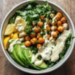 Now it’s time to bring it all together! In serving bowls, layer a generous handful of mixed greens, followed by the crispy roasted chickpeas and diced avocado. Drizzle the lemon tahini dressing over the top. It’s a feast for the eyes and the taste buds!