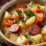 Keywords: soup, kielbasa, comfort food, creamy soup, easy recipe, cozy meal