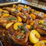 Keywords: Sheet-Pan Honey Mustard Pork Chops, Pork Chops with Peaches, Easy Dinner Recipe