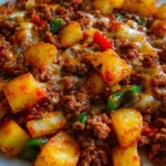 As you scoop this vibrant mixture onto your plate, the crunchy, crispy edges of golden potatoes contrast beautifully with the rich, savory blend of ground beef simmered in tomato sauce. Each bite delivers an explosion of flavor, a harmony of sweet and savory notes punctuated by the freshness of bell pepper and the aromatic kick of garlic. Top it off with melted cheese glistening under the warm glow of your kitchen lights, and you have a dish that feels both indulgent and deeply satisfying.