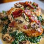 The tantalizing aroma of sautéed garlic and the irresistible scent of crispy bacon waft through your kitchen, stirring your senses and promising a delightful culinary journey. Nestled amongst the warmth of these comforting smells is a dish that embodies comfort and indulgence—Smothered Chicken with Creamed Spinach, Bacon & Mushrooms. Each tender bite of juicy chicken, enveloped in a velvety, creamy sauce dotted with fresh spinach and earthy mushrooms, evokes a world where flavors mingle and textures collide. As you savor the harmonious blend of salty bacon, rich cream, and the vibrant pop of greens, you feel a sense of solace that only a homemade meal can deliver.