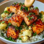 Assemble your bowls: Serve the salmon over a scoop of fluffy rice, topped with roasted cauliflower, a sprinkle of fresh herbs, and a dash of sesame seeds for that perfect finishing touch.