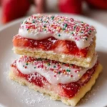 Delightful cookies that combine the charm of pop tarts with soft sugar cookies, filled with sweet strawberry jam and topped with a beautiful glaze and sprinkles.