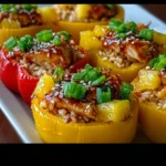 The kitchen bursts into life, and the aroma wafts through the air, wrapping you in a warm embrace of sweet, tangy, and savory notes. Picture succulent pieces of chicken, tender and juicy, mingling with delightful bits of vibrant pineapple and perfectly cooked rice. Each pepper, like a colorful gift, stands proudly, waiting to reveal its delicious treasure within. Teriyaki Pineapple Chicken and Rice Stuffed Peppers Delight brings the art of culinary storytelling to your plate, offering not just a meal but an experience that delights the senses.